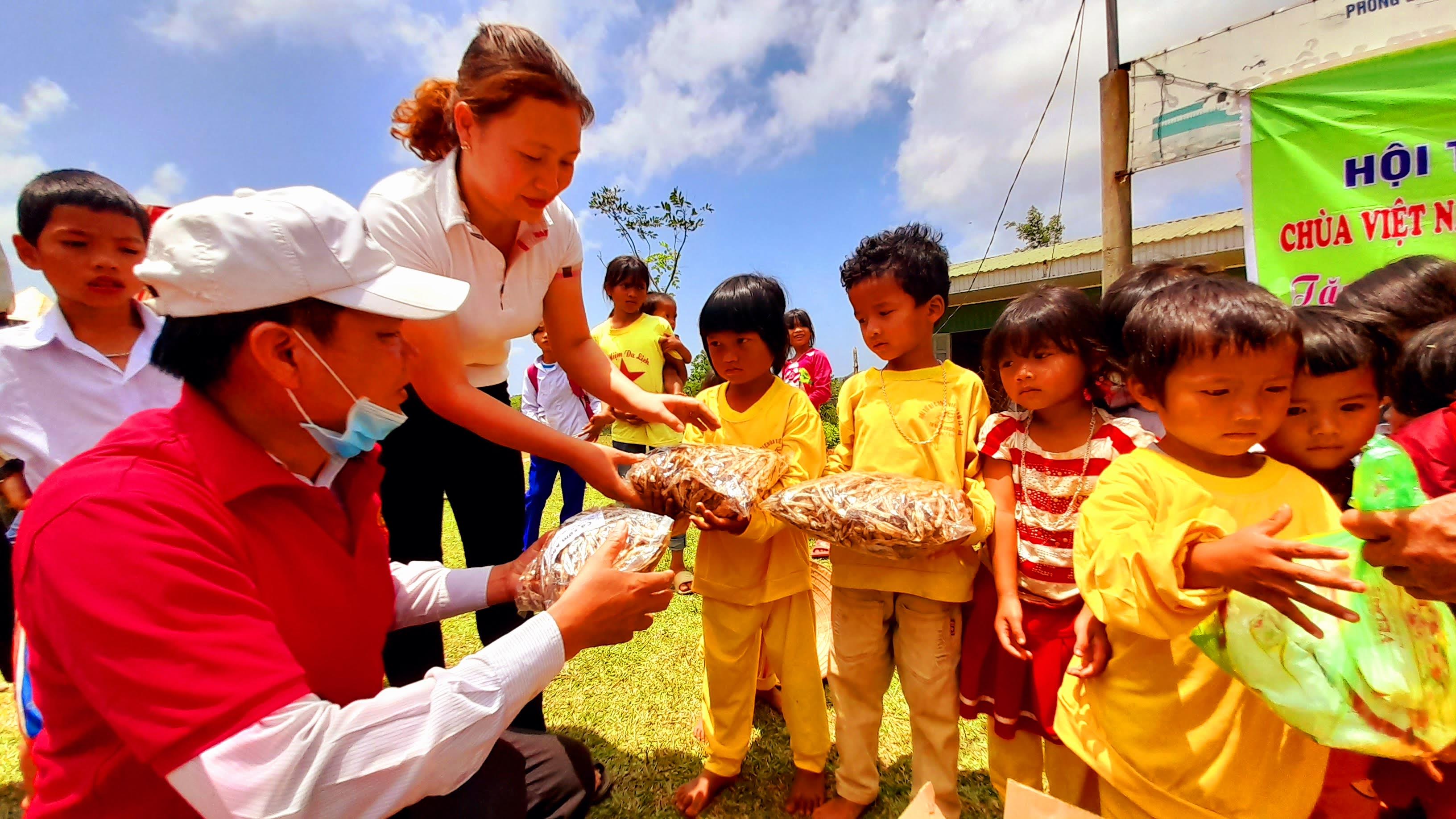 Với tinh thần Từ Bi cứu giúp người khó khăn, ngày 06 tháng 4 năm 2021 Hội Từ thiện Từ Bi – Chùa Việt nam Hoa Kỳ đã đến tận nơi và trao 94 suất quà cho 64 hộ dân và 2 điểm trường mầm non, tiểu học Ra Ty. Bà con dân bản Ra Ty và giáo viên điểm trường chúng tôi rất phấn khởi nhận các món quà, mỗi suất quà gồm 10kg gạo thơm, 2 chai dầu ăn Mezan, 2 chai nước mắm ông Tây, 2 gói bột ngọt, 2kg cá khô cơm, 1kg đường trắng, 2kg xà phòng giặt.