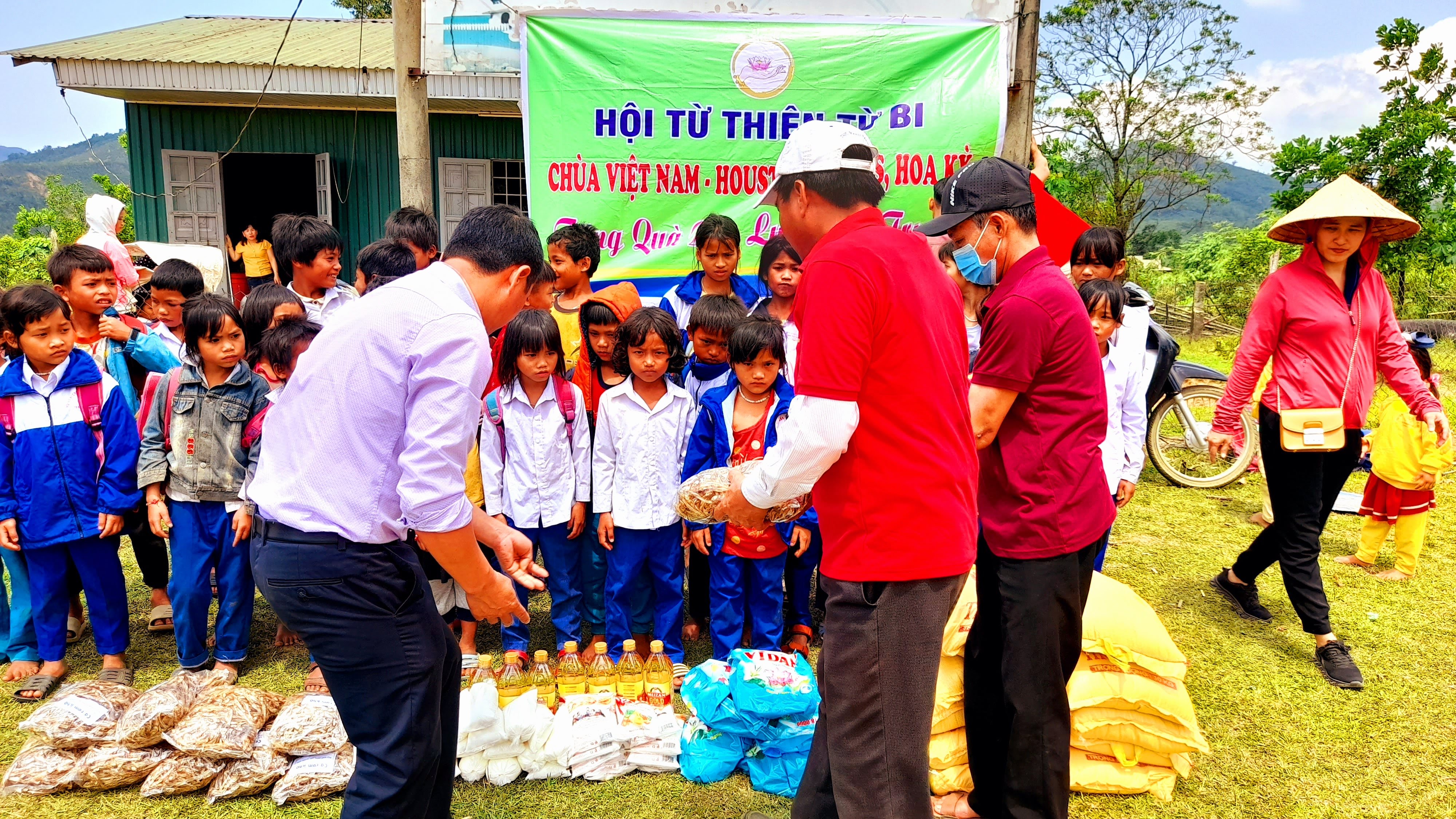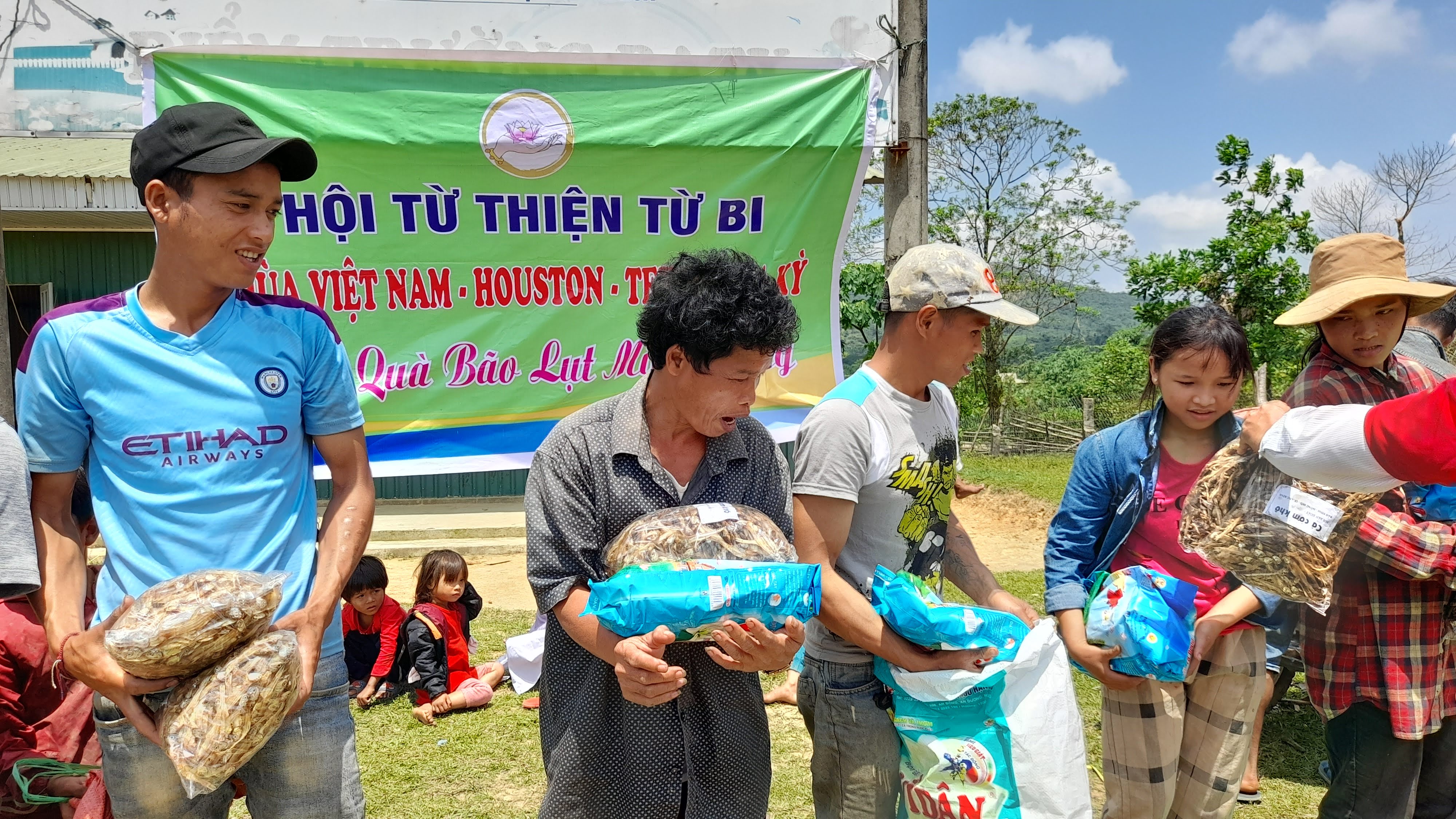 Cuối cùng Đoàn thiện nguyện đã tiếp cận và trao 94 suất quà của Hội Từ thiện Từ Bi- Hoa Kỳ đến tận tay 64 hộ dân và 2 điểm trường mầm non, tiểu học Ra Ty. Bà con dân bản rất phấn khởi nhận quà với mỗi suất là 10kg gạo thơm, 2 chai dầu ăn Mezan, 2 chai nước mắm ông Tây, 2 gói bột ngọt, 2kg cá khô cơm, 1kg đường trắng, 2kg xà phòng giặt. Trước tết Tân Sửu, 58 cháu học sinh tại điểm trường mầm non và tiểu học bản Ra Ty cũng đã nhận được 58 bộ áo ấm, áo đồng phục và ủng đi mưa từ Hội Từ Bi gửi lên cho các cháu.