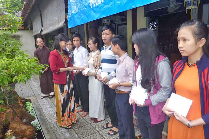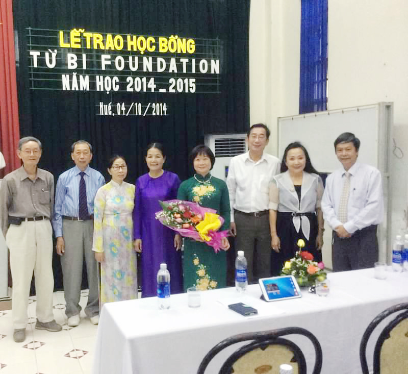 Ngày 4 và 5 thang 10, Tu Bi Foundation đã phát học bổng cho 10 sinh viên Y Dược tại Đại Học Y Huế và đã phát 3 hoc bong sinh viên cùng với 120 học bổng cho sinh nghèo tại Huế và Quảng Trị. Dưới sự chăm sóc của quý Sư Cô, quý Thầy và các bác tại Huế. Phải chăm lo cho các em từ tinh thần đến vật chất. Nhờ có quý Thầy, quý Sư Cô và quý Bác chăm lo các em chu đáo nên số học sinh ra trường ở Huế rất cao và đều kiếm được việc làm.
