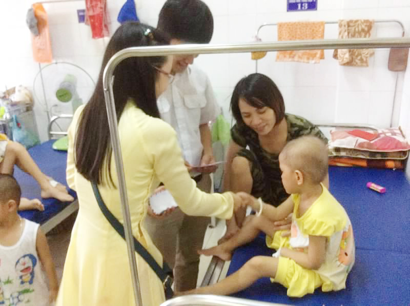 Tiếp tục theo chân cô Minh Minh đến khoa ngoại chấn thương để trao số tiền hơn 30 triệu cho một em nhỏ trong trại mồ côi,bị tai nạn phải cắt một chân tới đầu gối,mỗi khi trời trở lạnh,vết thương lai đau nhứt. Chúng con có thể thấy được niềm hạnh phúc,niềm tin lóe lên trong đôi mắt trẻ thơ của cậu bé khi nhận được số tiền ấy, và con đã tặng cho bé chuỗi hạt cô Dyên đã tặng với ước mong niềm vui và hạnh phúc sẽ đến với cậu bé, những cái mà lẻ ra cậu bé phải được hưởng…!