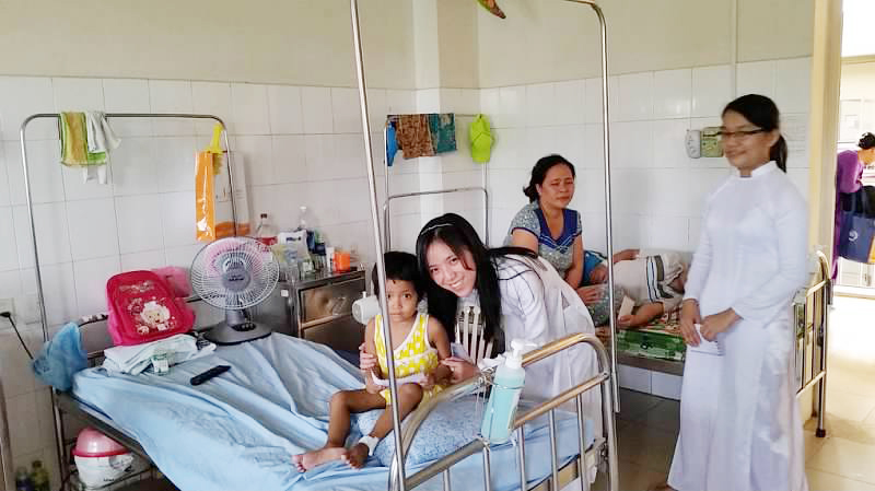 Sau buổi nhận học bỗng chỉ vỏn vẹn hơn 30 phút đồng hồ, cháu được cùng cô và các bạn qua bệnh viện Trung Ương Huế thăm và tặng quà cho các em nhỏ gặp hoàn cảnh không may trong cuộc sống. Bước vào phòng bệnh, nhìn các em vui cười đùa giỡn với bố mẹ rất hồn nhiên, vậy mà khi cháu lại gần và thăm hỏi thì lại điếng lòng vì những câu nói của bố mẹ các em “cháu nó bị ung thư máu cháu à”, hay của cô y tá “cháu này bị bại não bẩm sinh, lại là người dân tộc” … cháu không dám hỏi bố mẹ các em những câu như “em bị gì mà phải nằm viện vậy cô”, nhìn ánh mắt ái ngại và rướm vẻ đau lòng của họ cháu thấy thương lắm, cháu chỉ hỏi các em tên gì, mấy tuổi rồi … cháu chỉ muốn những niềm vui trên ánh mắt họ, cho họ quên đi những gánh nặng, những sự khó khăn trong cuộc sống. Phần tiền hội từ bi tặng cho mỗi người không phải lớn, nhưng ai nhận được cũng đều ánh lên vẻ sung sướng, sự quan tâm quả là có sức mạnh to lớn. Cháu cảm thấy đầy nghị lực và yêu ngành y hơn, những sự chăm sóc tận tình và quan tâm sẽ là món quà lớn mà mọi bệnh nhân đều mong muốn. Chỉ một việc làm nhỏ như vậy thôi, nhưng khi làm bằng cả tấm lòng cảm thông và quan tâm tới bệnh nhân những việc làm đó không hề nhỏ tí nào cả, cháu thật sự cảm thấy có ý nghĩa vô cùng lớn. Cháu cũng mong sau này cũng sẽ có điều kiện để làm từ thiện như các cô các bác. Bây giờ một phần cháu đã hiểu tại sao các cô các bác có thể vượt qua mọi vất vả để giúp đỡ những người khó khăn, lòng thương yêu giúp con người sống thanh thản và có ý nghĩa biết bao nhiêu. Các cô các bác sẽ là những tấm gương cho cháu, và cháu sẽ nhớ lời cô bác tập cho mình tính kỷ luật và những quan điểm đúng đắn riêng, làm những điều có ích để làm gương cho các thế hệ con em tiếp theo sau.