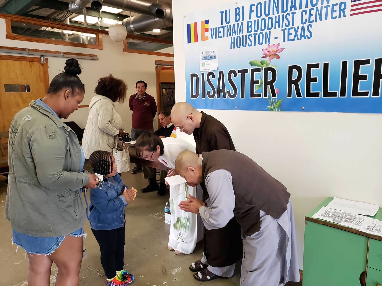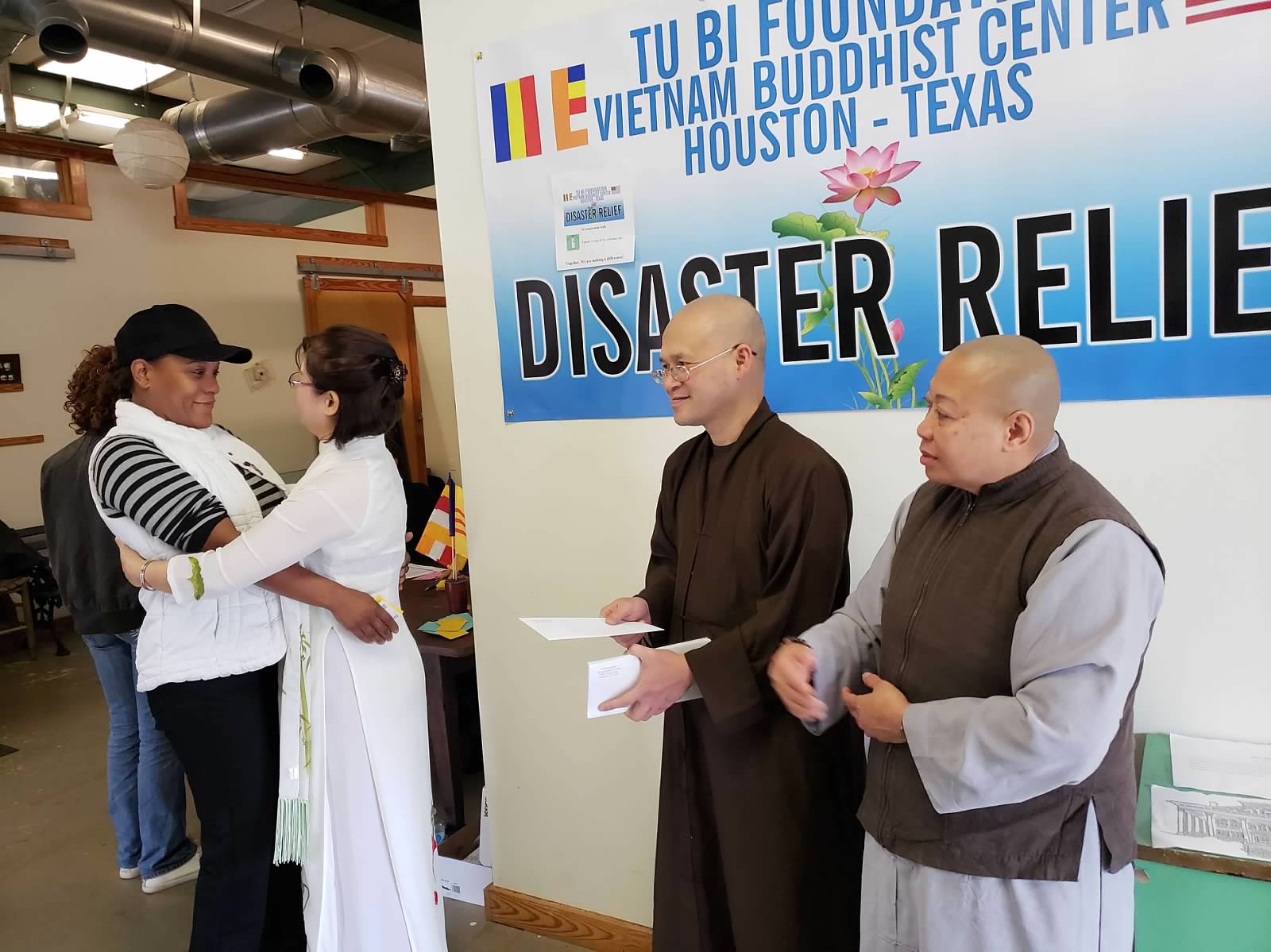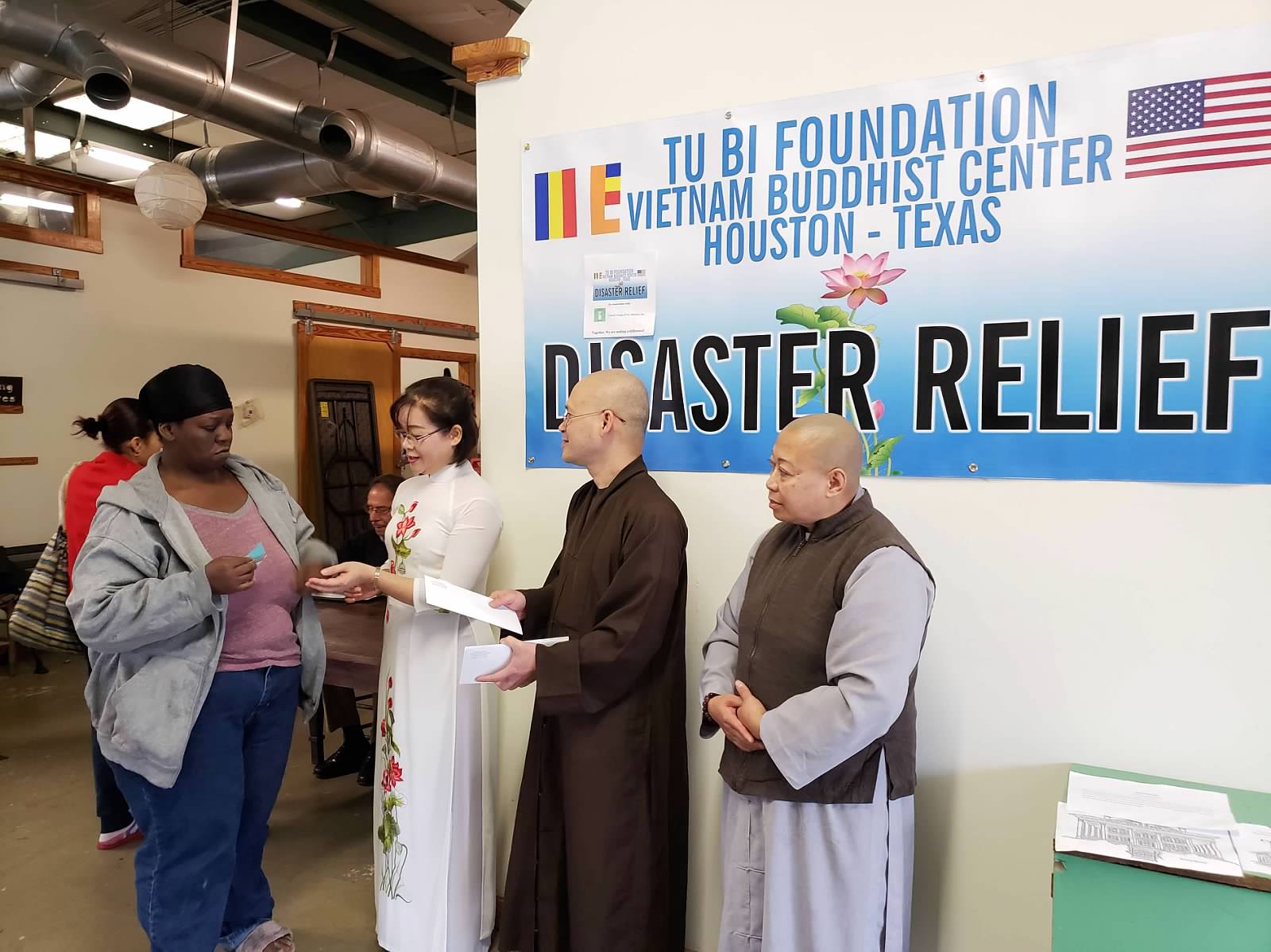 Giai đoạn hồi phục sau cơn bão Florence tại North Carolina đã được trực tiếp thực hiện ngày Oct 26-27/10/2018, Chúng tu sĩ và Phật tử chùa Quan Âm tại South Carolina và thiện nguyện viên tu Bi Foundation – Chùa Việt Nam, TX tại Virginia đã trở lại North Carolina để phát 110 phần quà đến các gia đình đang gặp khó khăn sau cơn bão Florence tại NC gồm các gia đình Việt Nam và Mỹ, không phân biệt chủng tộc, tôn giáo… Chúng tôi đã được sự hổ trợ của Hội United Way, Support the Port tại Wilmington giúp liên lạc đến các gia đình đang gặp khó khăn sau bão Florence. Hội đã chọn 107 gia đình người Mỹ có trẻ con và người lớn tuổi neo đơn, chưa đón nhận được sự giúp đỡ của bất cứ hội đoàn nào trong danh sách 3,000 gia đình đã xin các hội từ thiện tại địa phương giúp đỡ suốt thời gian bị bão lụt. Mỗi gia đình đã được đón nhận 200USD, 5 gia đình đón nhận 100USD vì không có trong danh sách đã chọn. Và 3 gia đình Việt Nam, mỗi gia đình $400 USD. Tổng giá trị là $22,300USD. Tại Virginia có Hội Thiện Nguyện Tình Thương đã đóng góp 10,000 USD và Hội từ thiện Pháp Hoa đã đồng hành cùng Tu Bi Foundation, để thực hiện cuộc ủy lạo do bão Florence gây ra. Một việc làm rất có ý nghĩa trong tinh thần đoàn kết giữa các hội từ thiện tại Virgina.