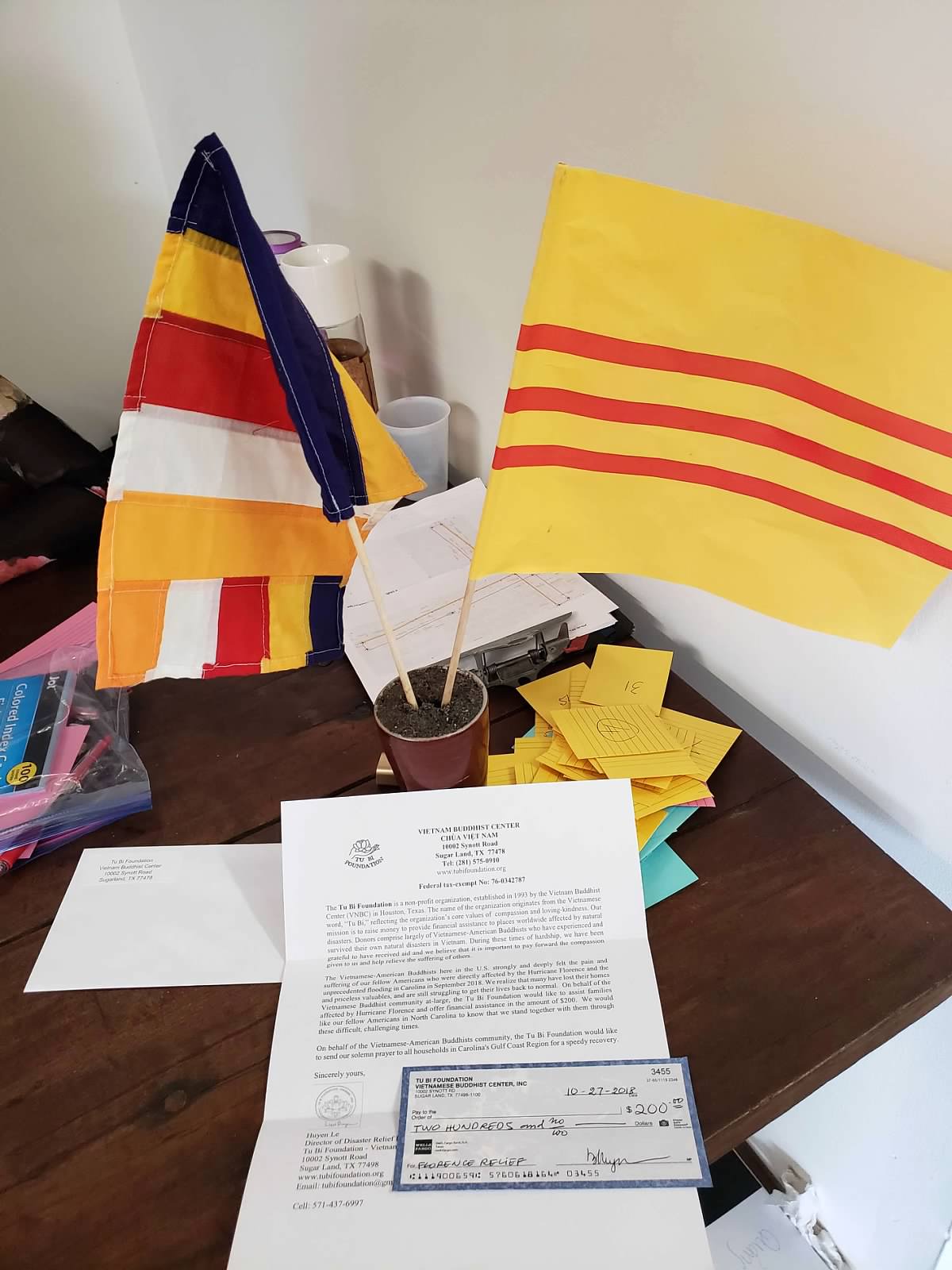 Tổng số tiền Tu Bi Foundation – Chùa Việt Nam, TX đã quyên góp được là 35,390.0 USD từ quý Phật tử và đồng hương từ nhiều tiểu bang gởi về giúp ủy lạo, giúp đỡ các chương trình bị thiệt hại do bão Florence, Michael và Tsunami & Earth quake tại Indonesia gây ra.